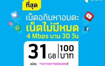 📌 เล่นเน็ต 2Mbps ไม่อั้น แค่ 200 บาท / 30 วัน